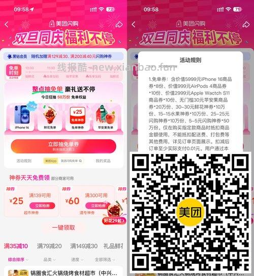 【美团双旦同庆抽50万份免单券】美团APP扫码->今天10/11/12/14/16点会放水,抽50万份免单神券