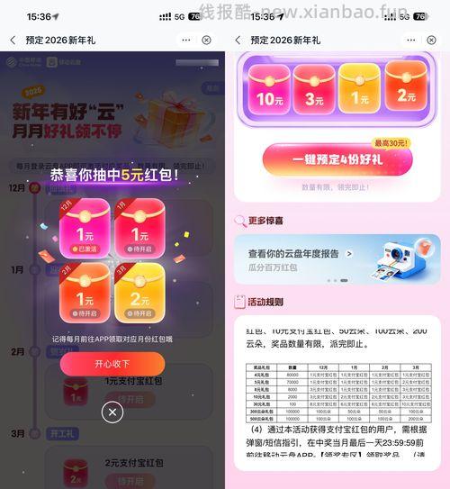 【移动预定新年礼抽4~30亓红包】三网用户均可参与!跳转到移动云盘APP->直接抽4~30亓红包,每个月可领对应红包